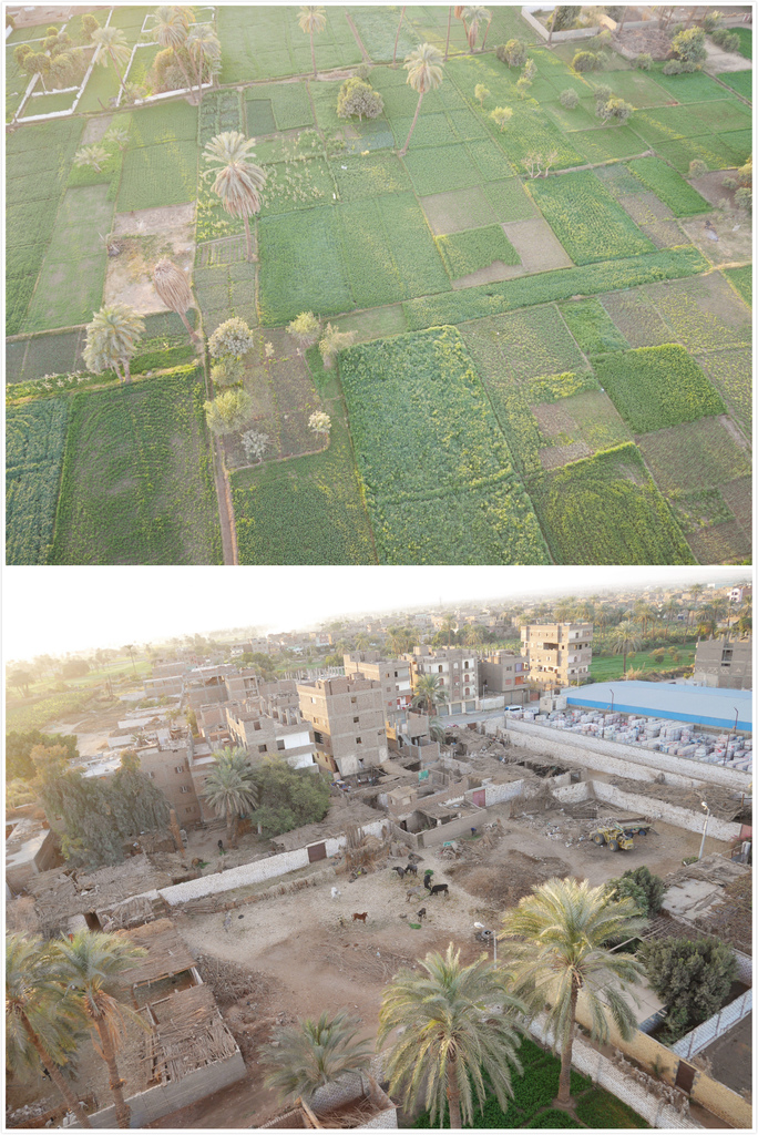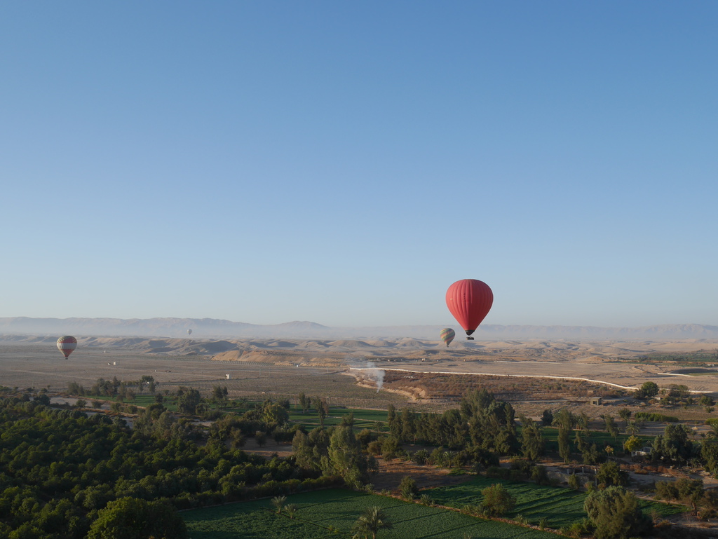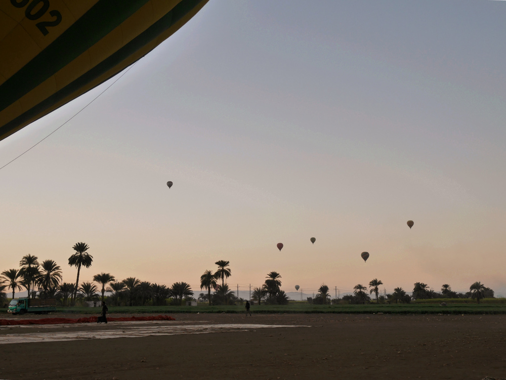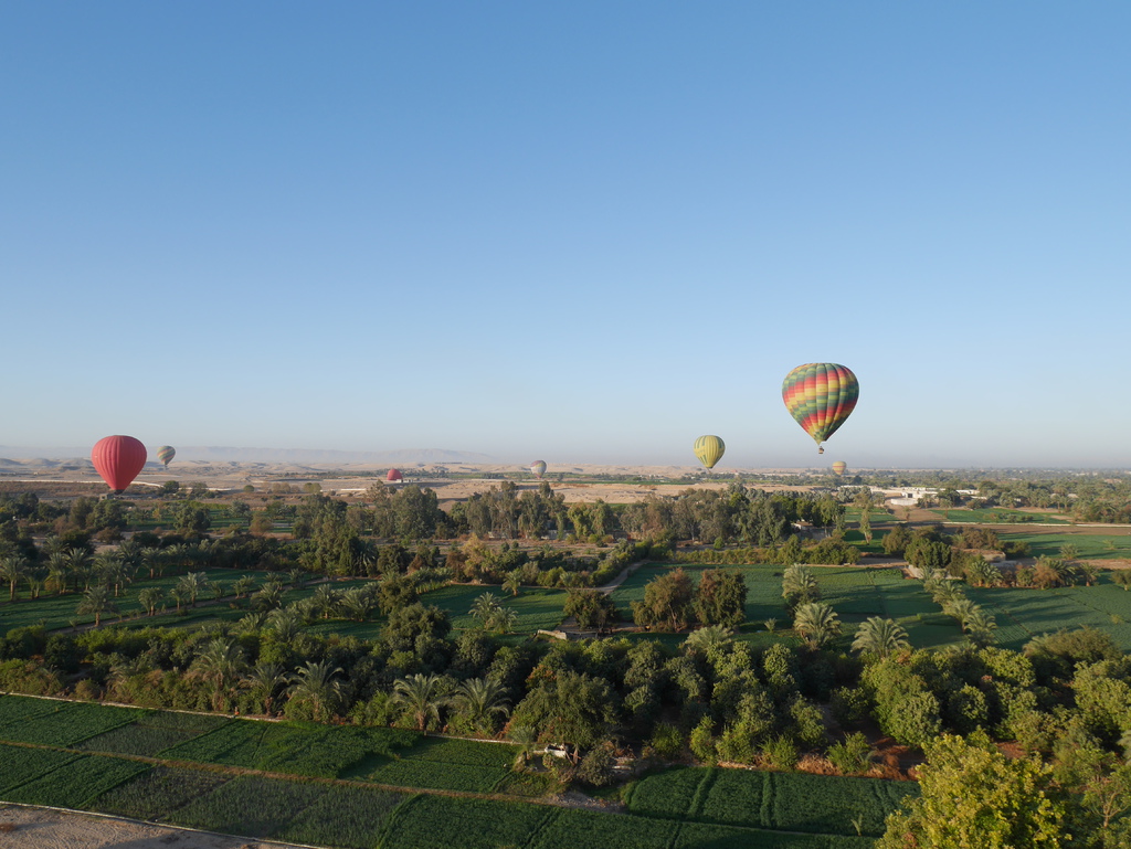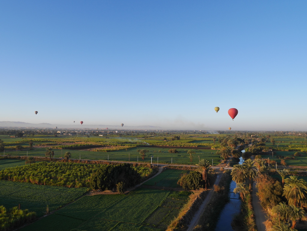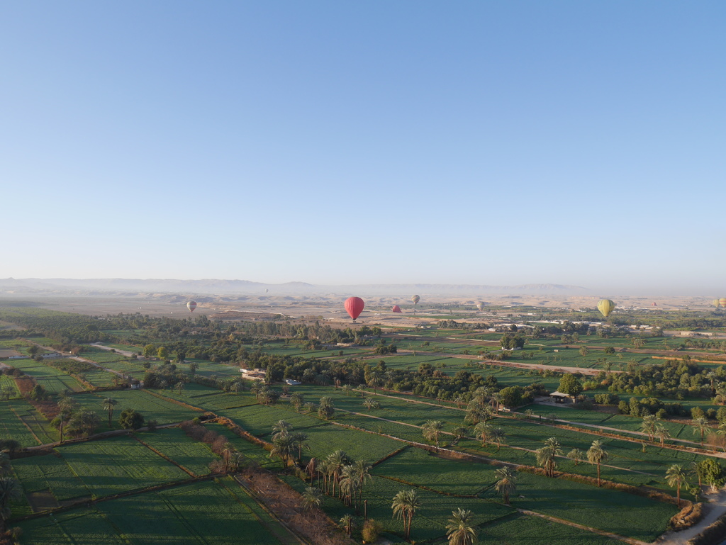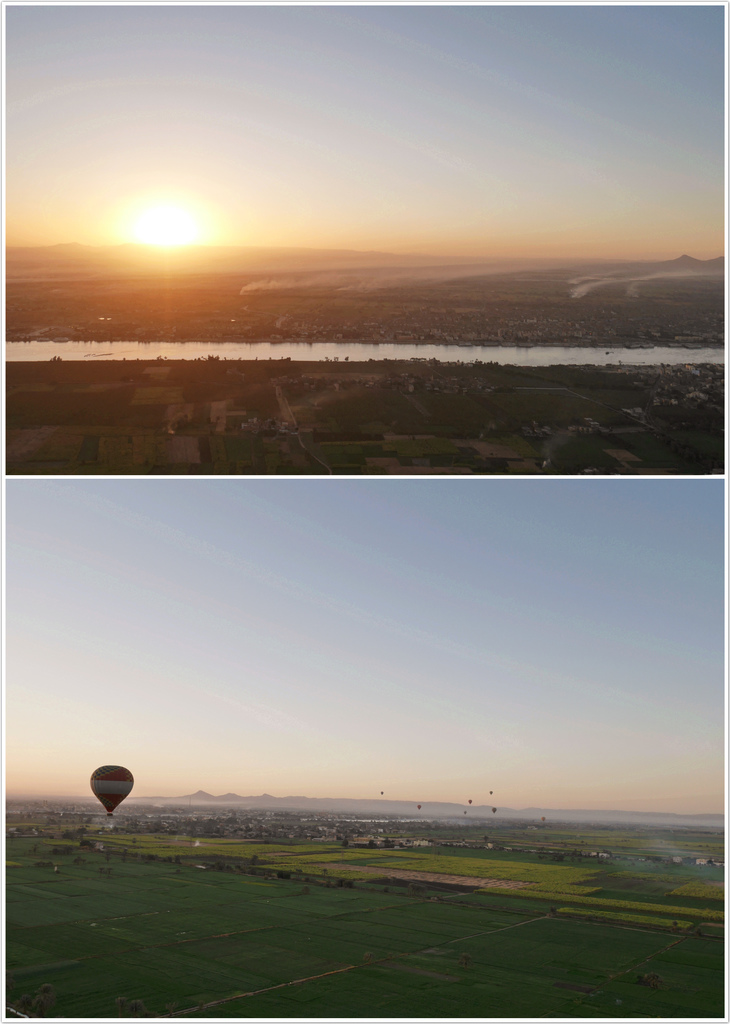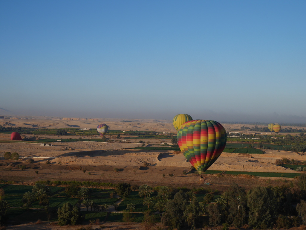 從熱氣球俯瞰下的是位於尼羅河西岸的帝王谷,埋葬古埃及新王國18-20王朝的法老的山谷