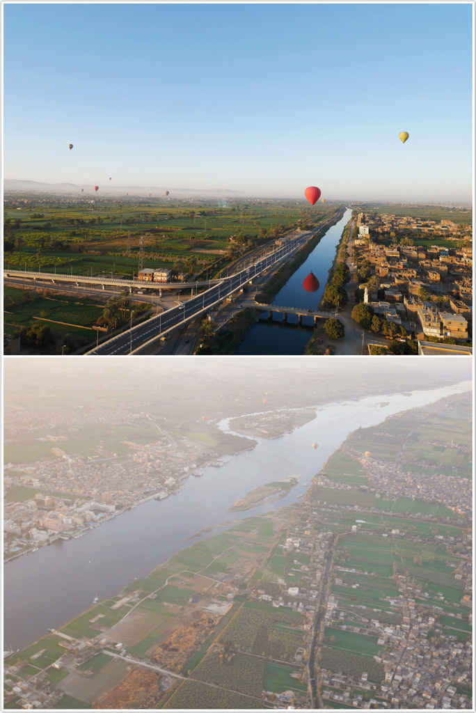 尼羅河的東、西兩岸,對比著生與死、地與天、綠洲與沙漠