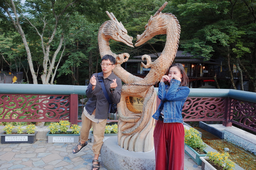 神秘的洞穴口前還有龍擺成詭異的愛心,就被大家拱著跟大叔拍了一張合照了!