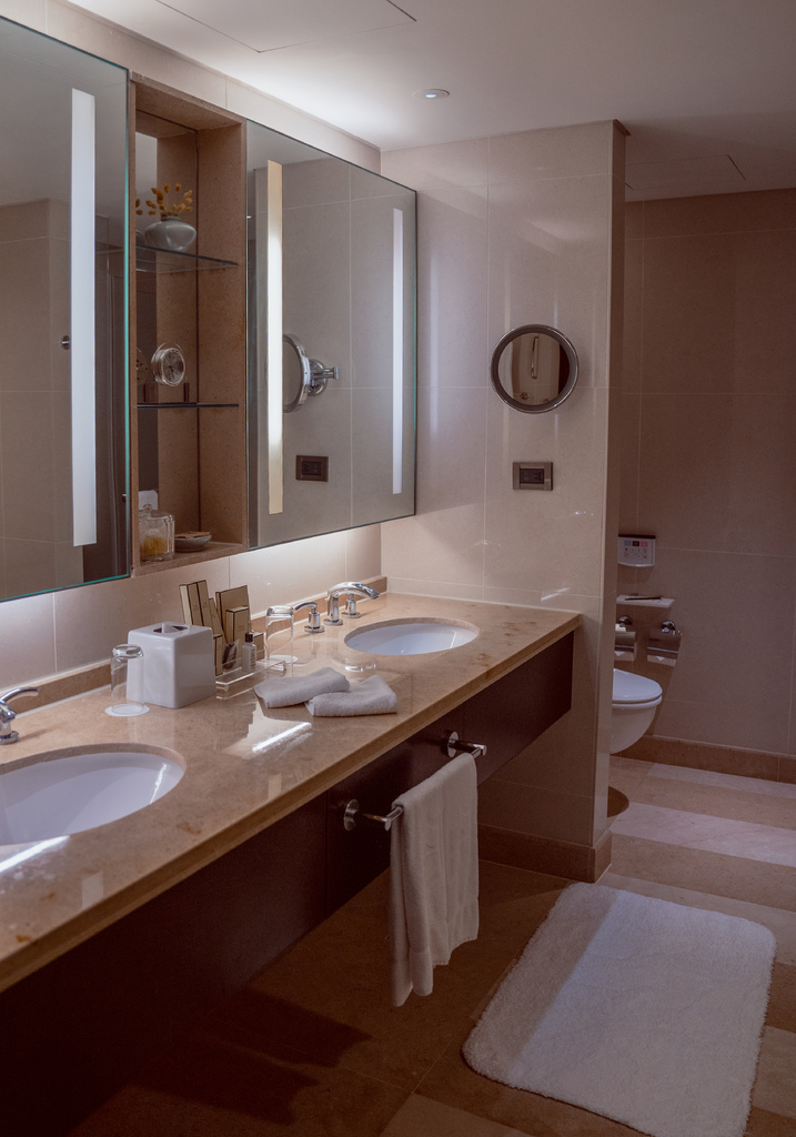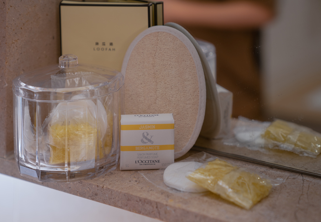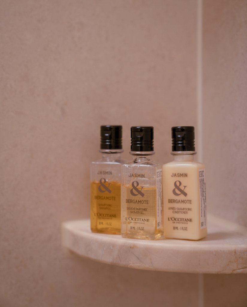 一入門的左手邊是乾濕分離的廁所,雙洗手台設計👍,還有歐舒丹沐浴備品(豪華閣及套房都是使用歐舒丹) ;