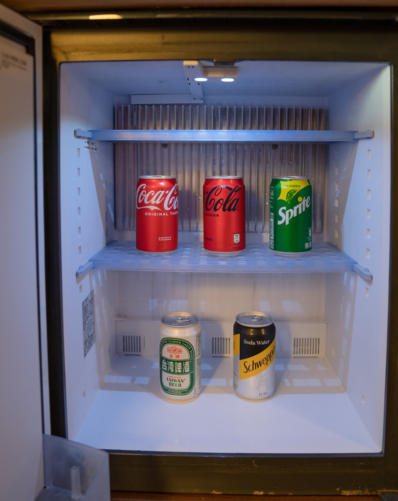 入門的右手邊是 mini bar,冰箱有豐富的飲品,房間提供浴衣及室內拖。