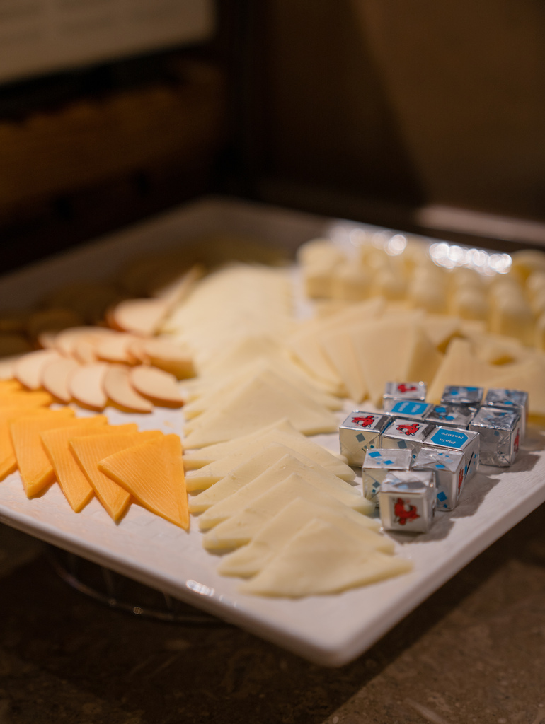 只有豪華閣尊榮客房或專案限定可以享用!偷偷跟大家說菜色會不斷更新,坐越久吃到的種類越多,雖然說是小點心但是可以吃飽!還有各式各樣的紅、白酒可以享用,別忘了看看拱形天花板,晚上亮燈好美啊❤️