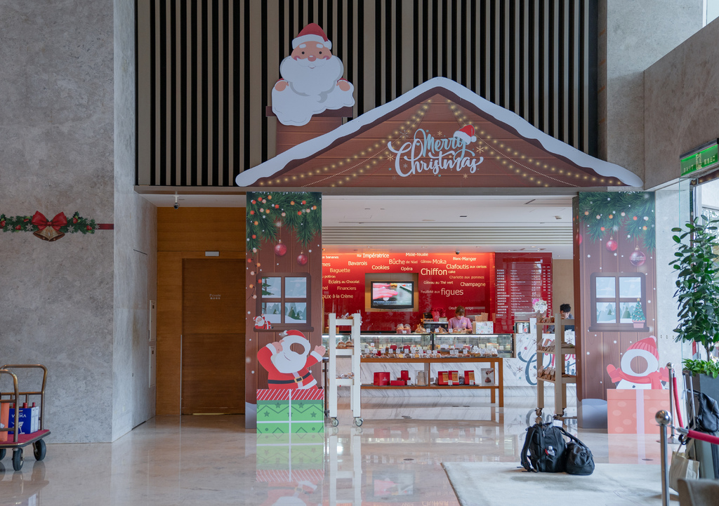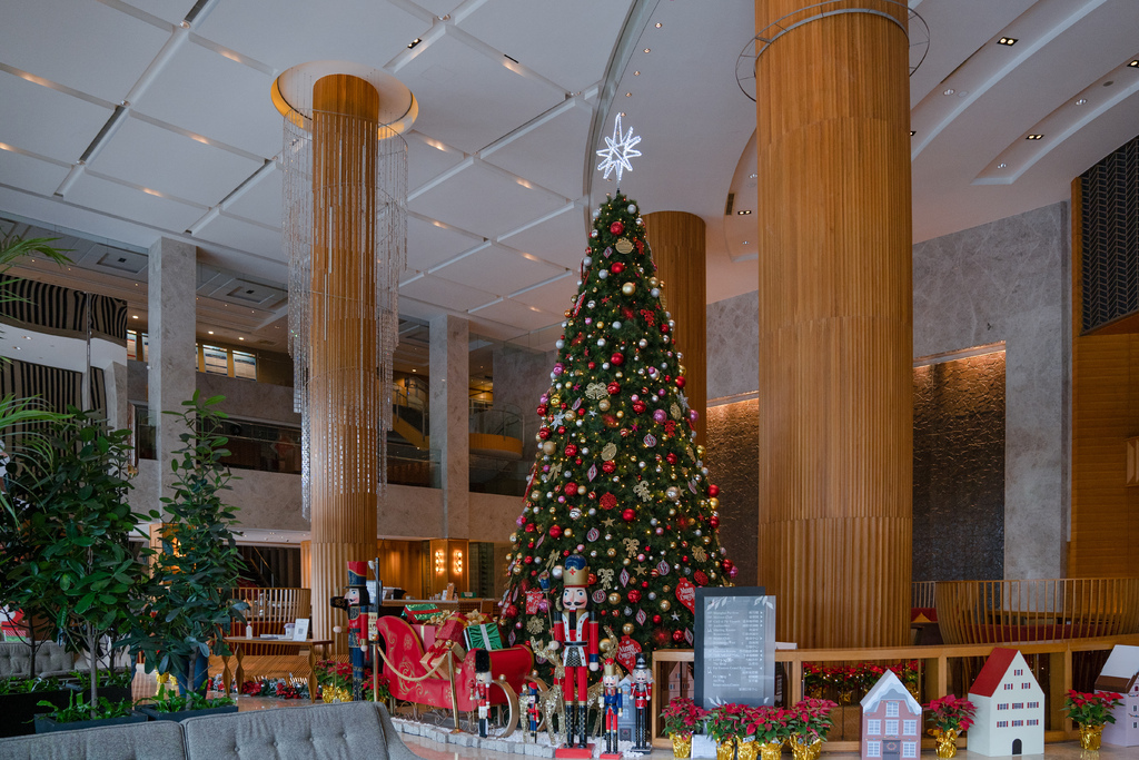 正逢聖誕月可以看到好多精緻的聖誕節佈置。停完車搭著電梯到櫃台,服務人員非常親切引導我們方向,不會因為過大的空間而迷路。