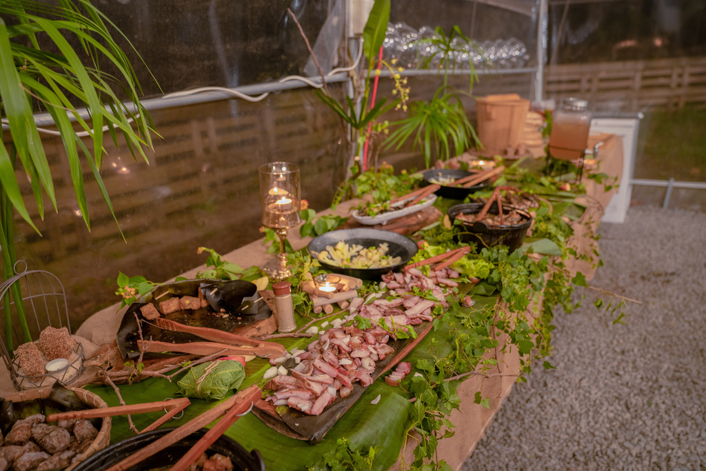晚餐是超有儀式感的原住民燭光晚餐,現場還有駐唱歌手。炸豆腐超好吃,很適合當下酒菜,我們每個女生竟然各自帶一瓶酒,晚餐時間全部KO😂 ;