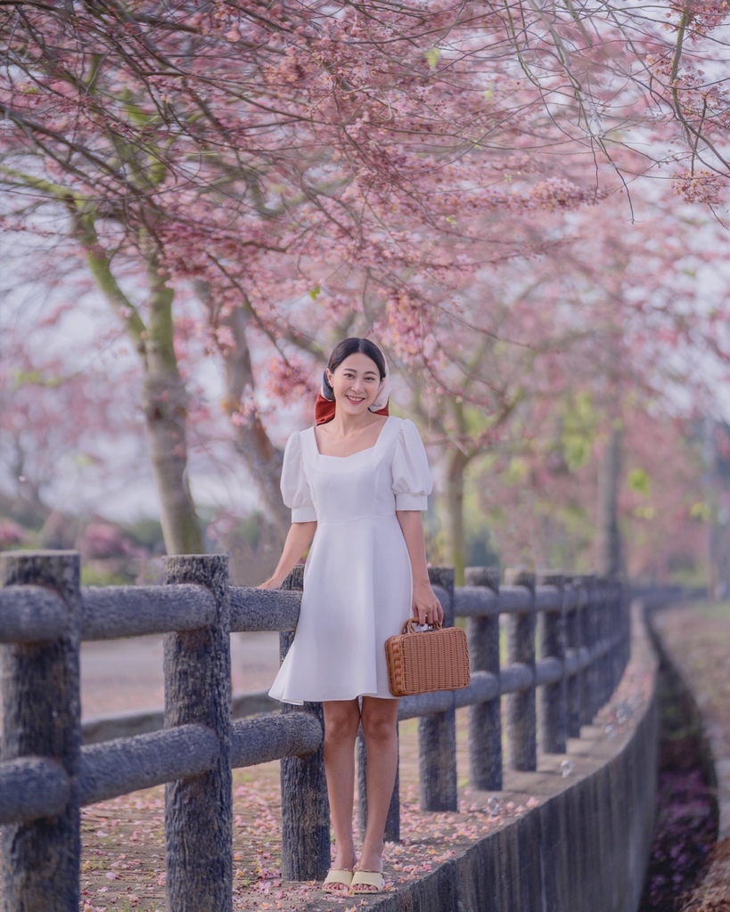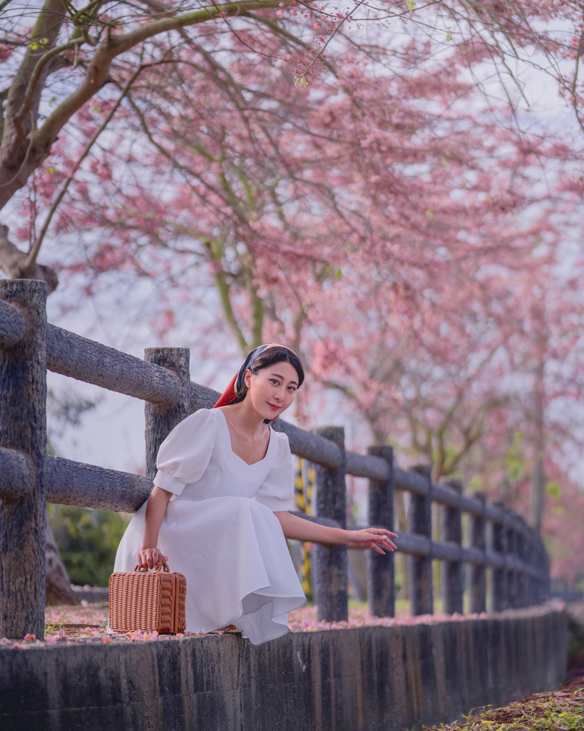 台南西港金砂里幾年前參與了農村再生計畫,在純樸的農村小鎮內種植了好幾排花旗木,每年盛開時非常壯觀,吸引許多遊客前來,讓原本默默無名的村落熱絡了起來。粉色花旗木盛開時,遠看很像粉櫻,花旗木的花期卻比櫻花長,花比櫻花大也更厚實,不易被風吹落。這裡有好幾排花旗木可以取景,人多也不怕拍不到,我個人最喜歡延伸木欄的視角,搭配花旗木很有鄉村感💕!!