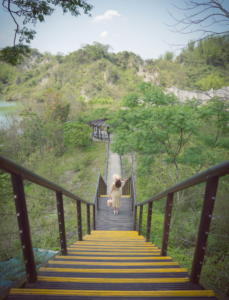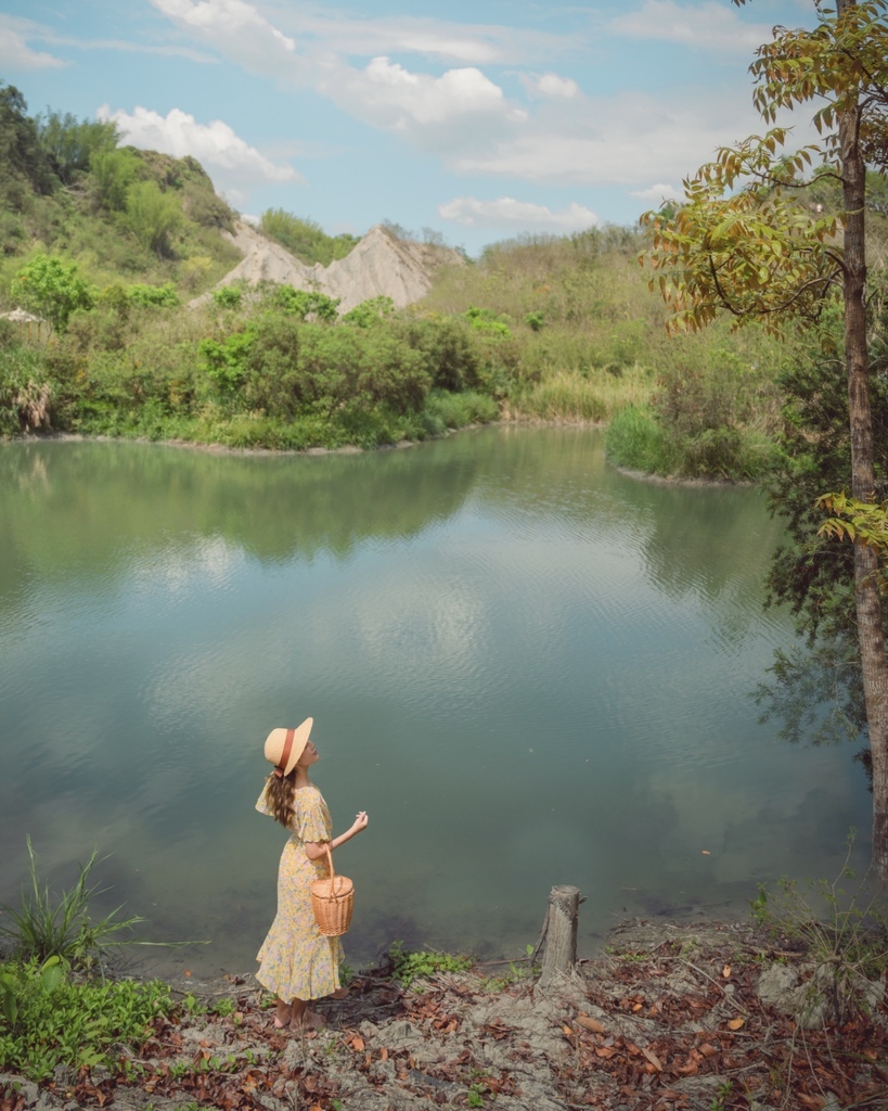 台南的牛埔泥岩水保持教學園區為丘陵地形,海拔從80到最高的350公尺不等,因為地質土壤相當特殊,經由河流侵蝕沖刷,形成不少的惡地地形,這種地形又稱「月世界」,台灣除了高雄田寮月世界最有名之外,台東卑南的「利吉惡地」,還有這裡台南龍崎及左鎮的308高地。入口處的延伸木棧道是大家會停下來拍照的地方之外,往下走的景色也非常漂亮,後方的湖泊又叫夢幻湖,跟台南惡地形成鮮明的對比,後方有小山湖泊,湖如其名非常夢幻。這裡也是台南市境內人口最少的行政區,因為開發的少,加上環境備受保護,保留了珍貴的自然風光,也不會看到太多現代化的水泥建築👍