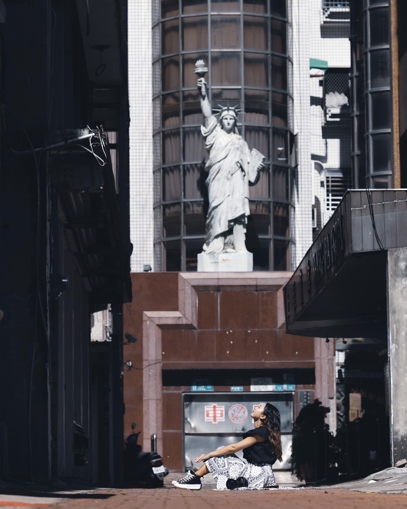 隱藏在巷弄間的自由女神,矗立在一排約20年老房上,聽聞跟著大樓建案一起建立的,很好奇為何是用自由女神,網路上找不到特別的故事,但這種中西碰撞的美感我超喜歡,忍不住安排進我的台南行程裡。