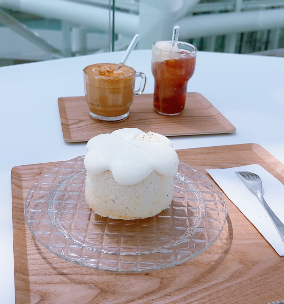 「南美春室」位於台南美術館2館頂樓,不參觀美術館也可以上來用餐。白色場景、透明玻璃,搭配樹蔭的遮蔽設計,使光線倒映在地板上,超級好拍;頂樓的樹映概念設計是由普立茲克獎、日本建築大師坂茂操刀設計,外觀看起來像是自然極簡派風格的白色美術聚落。不管是由上而下或是由下而上的取景都很不錯,甜點也很好吃呢👍。