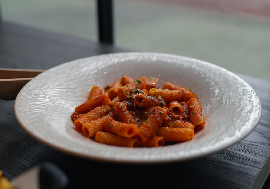 選用水管麵是因為每一口都會吃到肉醬藏在水管麵裡面,是一道香氣撲鼻且口感豐富的義大利麵。