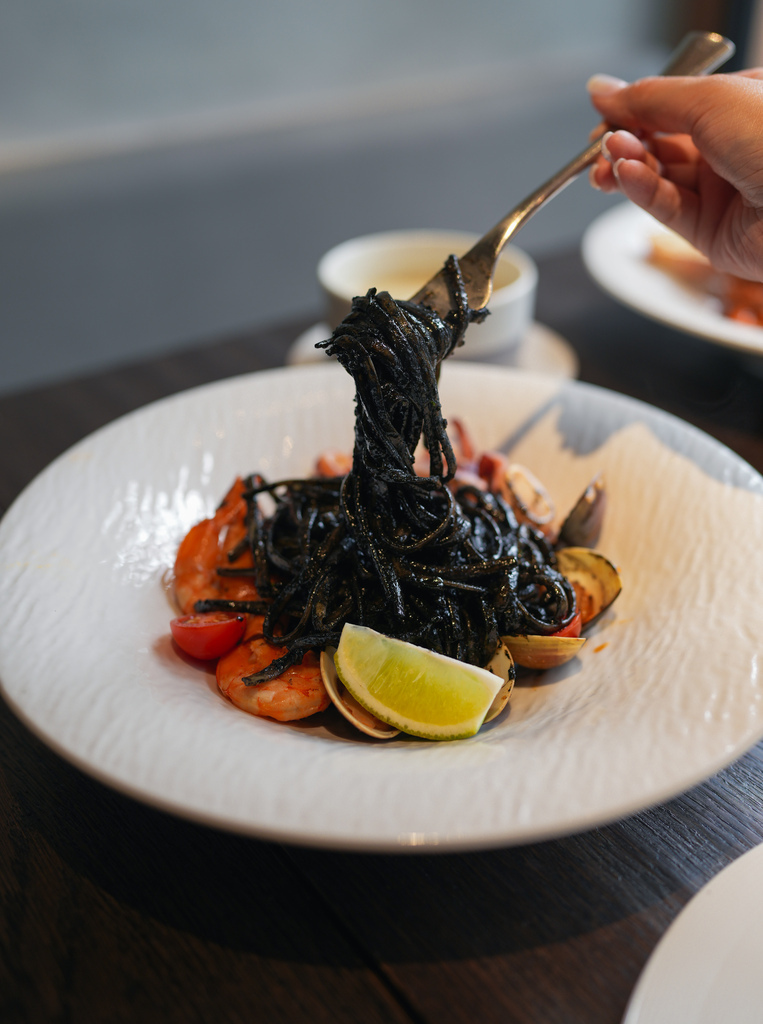 雖然會吃到嘴巴都黑黑的,但是麵條很有嚼勁,配上鮮美又多樣的海鮮,每一口都像在威尼斯吃的墨魚海鮮麵。
