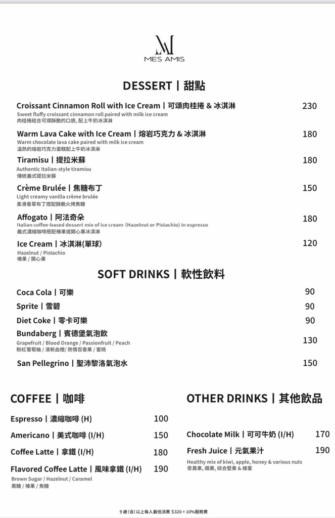 💰每人低消為NT $320+10% 服務費。