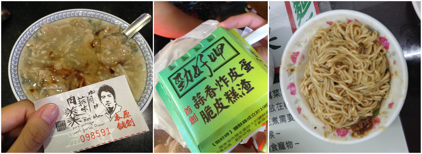 第一天的美食裡推薦北門蒜味肉羹、羅東夜市的勁好岬皮蛋和三星蔥、大麵章(賭博麵)