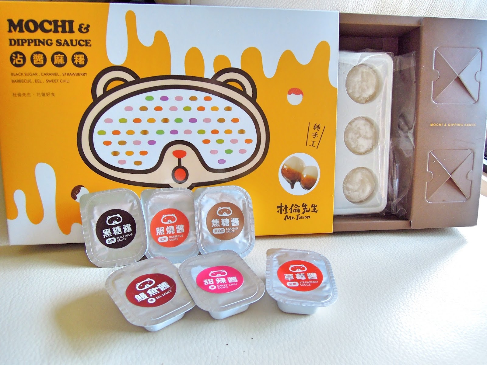 首先沾醬麻糬: 獨創的麻糬新吃法,搭配特製沾醬,邊沾邊吃,美味又有趣。口味分別有照燒醬、鰻魚醬、甜辣醬、黑糖、焦糖、草莓。