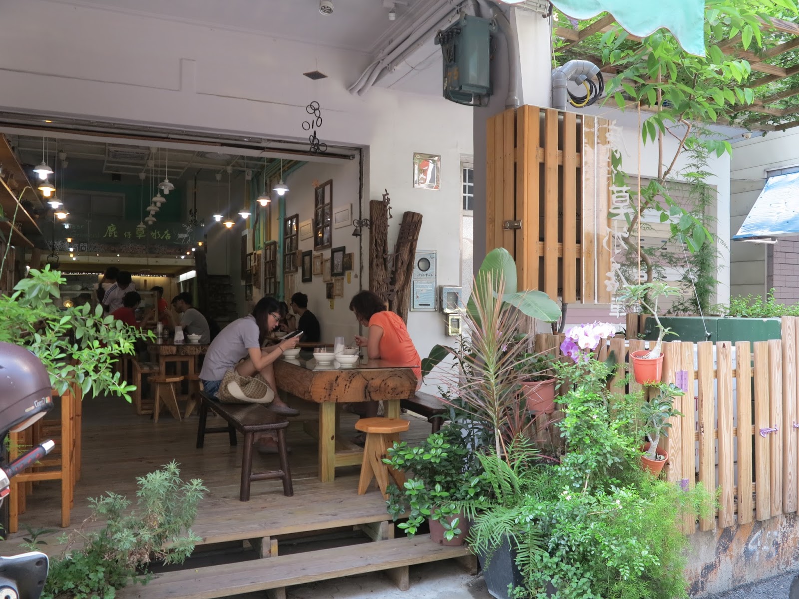 店內的座位不算多,花花草草的擺設和木頭座椅看了很舒服,雖然身體上因為沒有冷氣滿頭大汗不舒服,哈哈。
