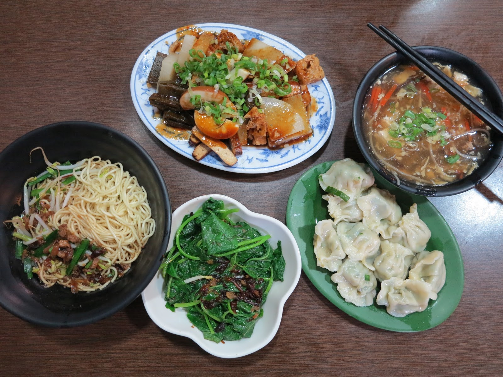 看我點了這麼多就到我有多想念了吧,這些幾乎是必點了,乾麵 地瓜葉 水餃 酸辣湯 滷味。