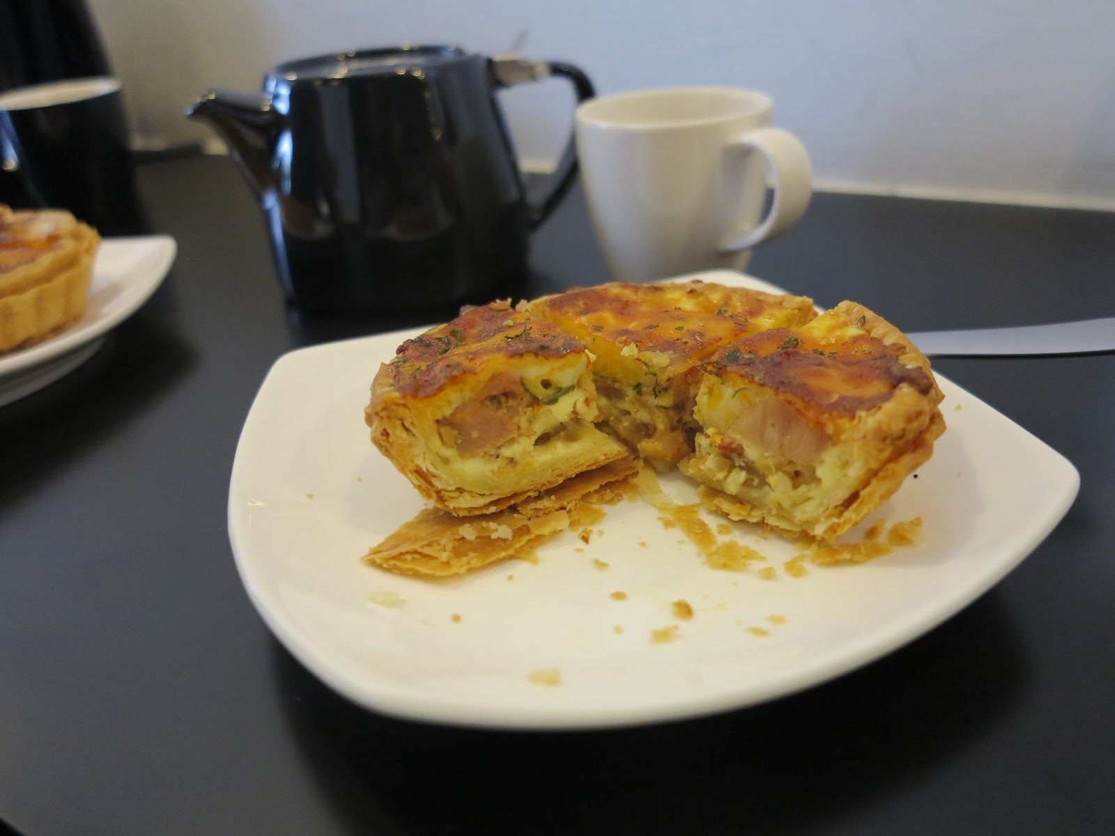 我們點了一杯暖呼呼的熱茶,馬鈴薯鹹派和燻雞肉鹹派