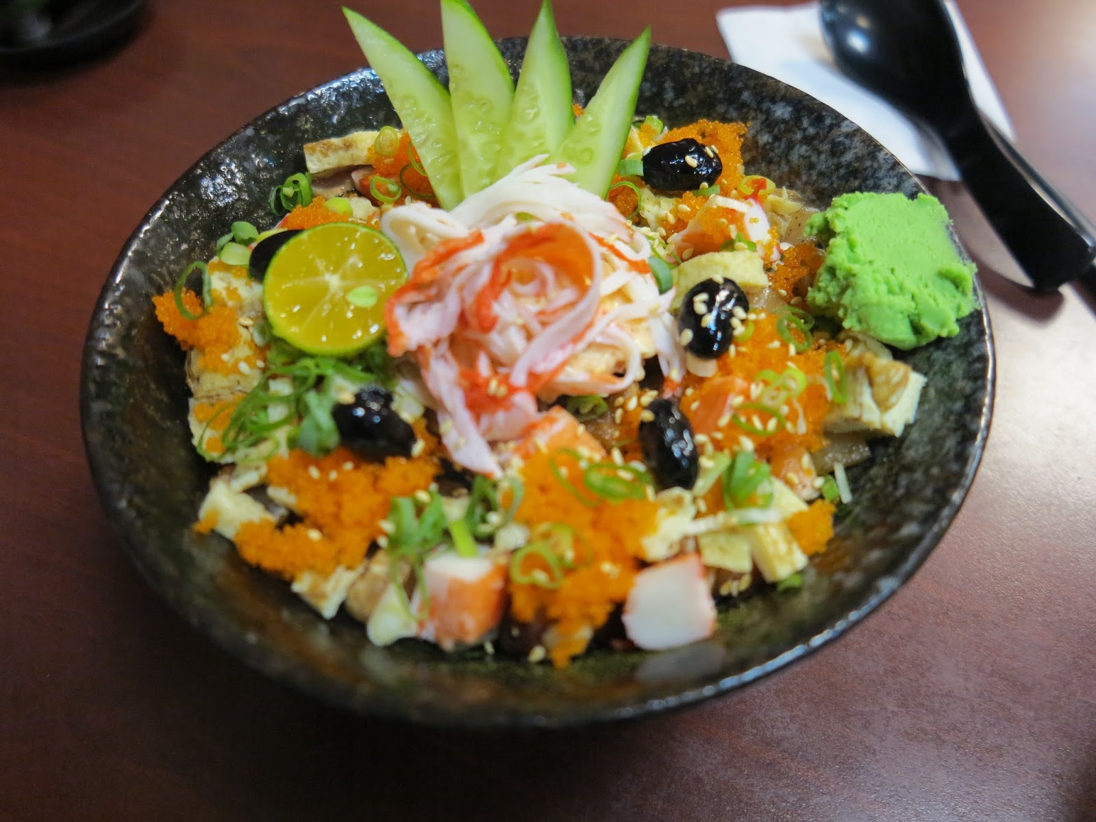 蟹肉 蝦卵 炙燒鮪魚 炙燒鮭魚 黑豆 海苔 蔥花 芝麻,均勻的拌在一起,所謂的"黏黏飯",好好吃!!!